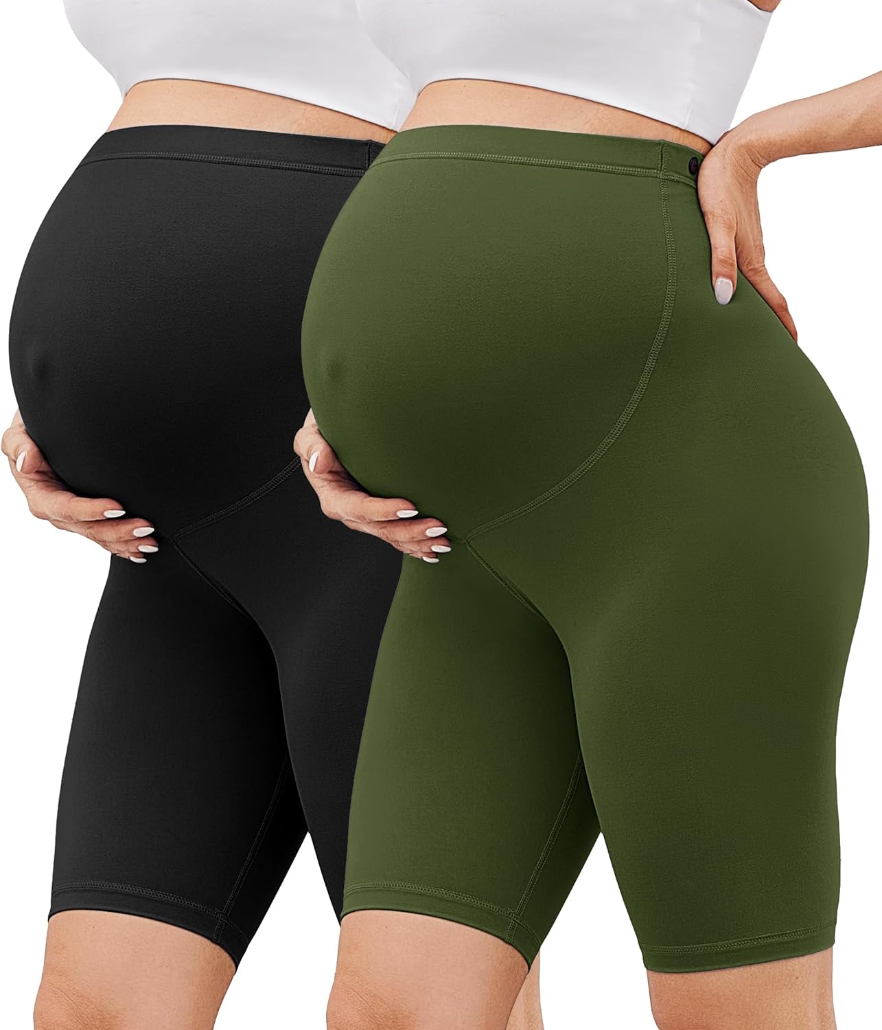 BONVIGOR Buttercloud Maternity Shorts Over The Belly-8" Pregnancy Biker Shorts Women Lounge Yoga Pants