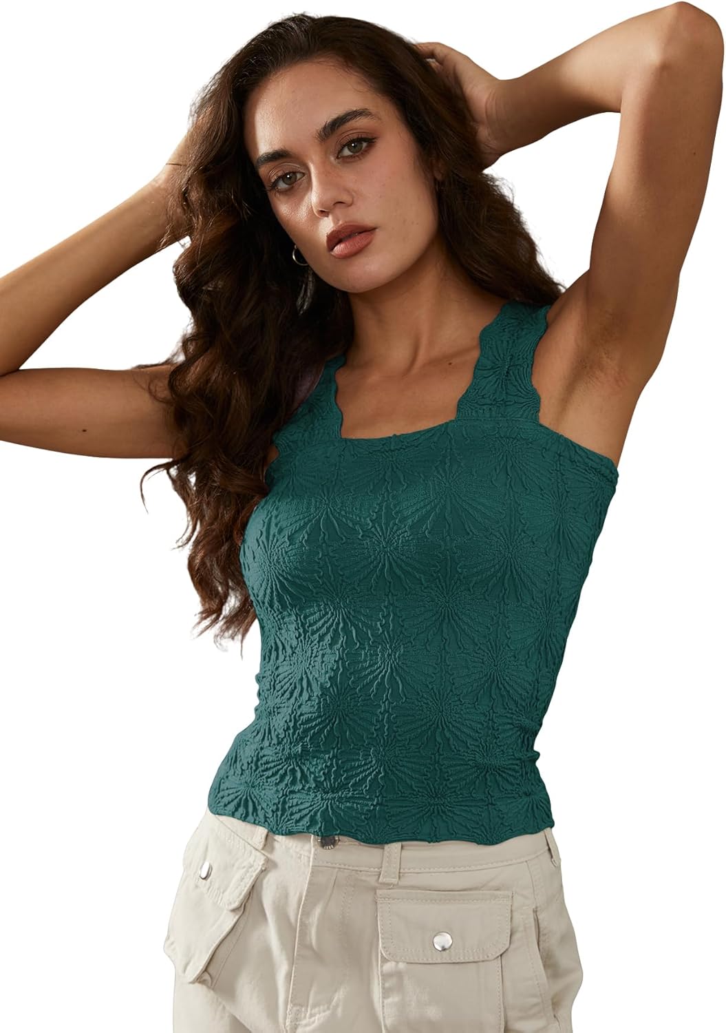 Women's Square Neck Seamless Wide Strap Crop Tank Tops,Slim Fit Flower Lettuce Trim Crop Cami Tops, Love Letter Cami