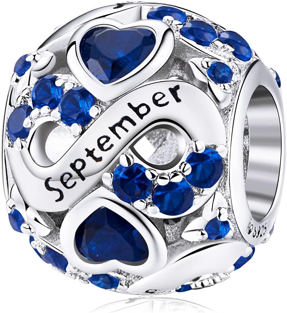 Birthstone Charm Jewelry 925 Sterling Silver Infinity Love Heart Charm Openwork Bead for European Bracelets and Necklaces with 5A Cubic Zirconia, Birthday Mothers Day Jewelry Gifts for Women & Girls