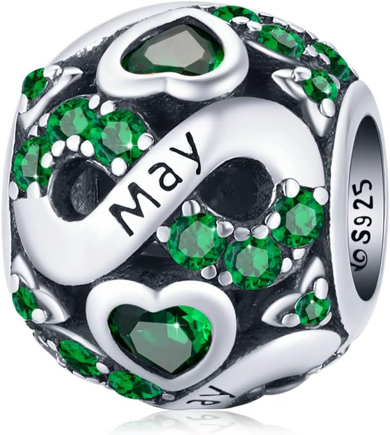 WOSTU 925 Sterling Silver Birthstone Bead Charm Jewelry for Charms Bracelets for Women Mother Sister for Gifts for Birthday Mother's Day Thanksgiving Christmas