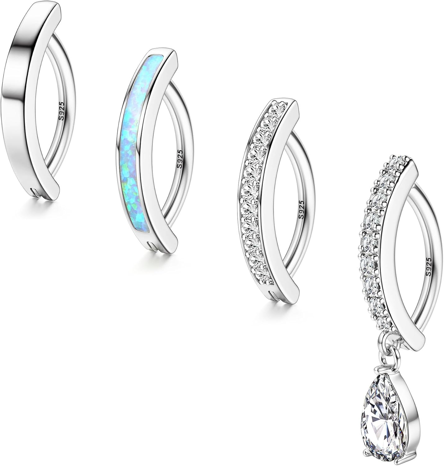 MILACOLATO 4Pcs Silver/Gold Belly Button Ring Sterling Silver CZ Opal Clicker Hoop Belly Button Rings Reverse Navel Body Piercing Jewelry for Women