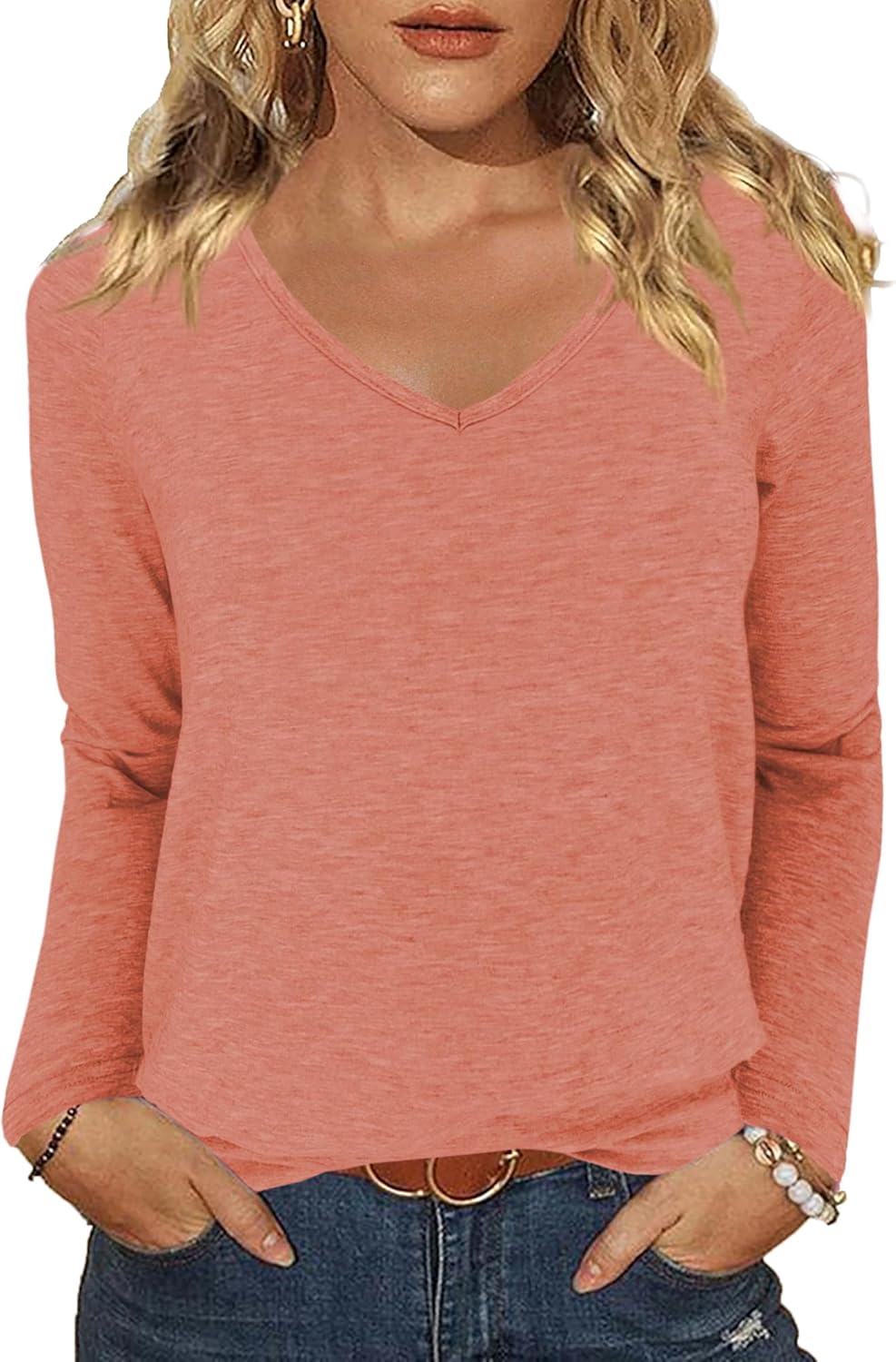 iGENJUN Womens Basic Slub T-Shirts Long Sleeve V Neck Tees for Women Lightweight Soft Casual Fall Tops