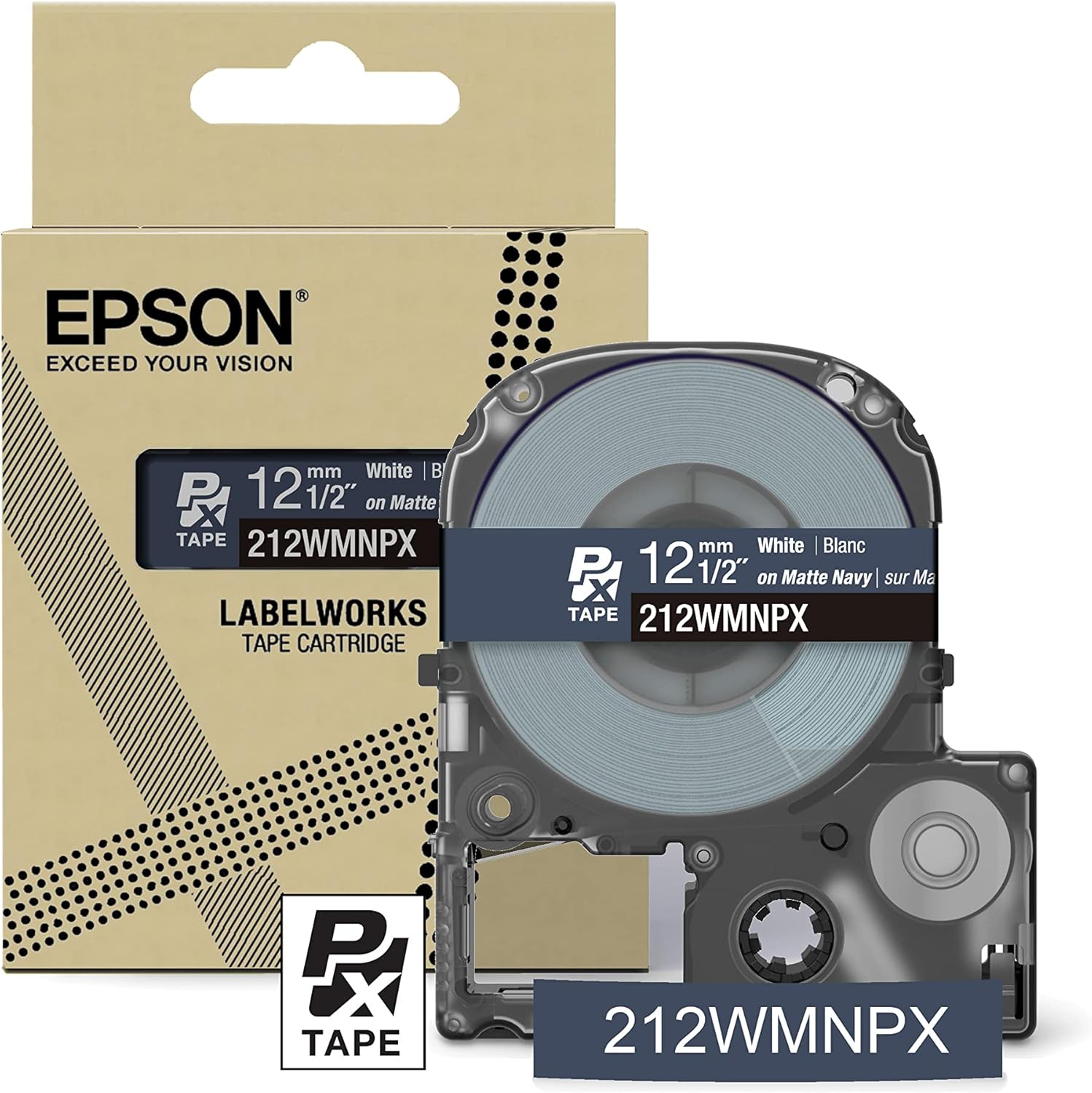 Epson LABELWORKS 212WMNPX Genuine PET (Polyester) Tape Cartridge - White on Matte Navy Designer Craft Label Maker Tape - 1/2" (12MM) Wide, 26'