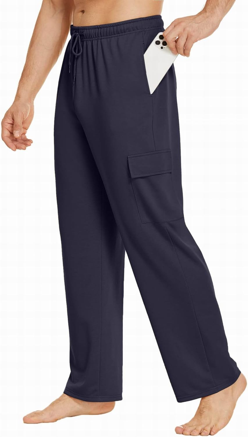 Deyeek Men's Cargo Sweatpants Open Bottom Baggy Sweat Pants for Mens Straight Leg Gym Cargo Sweats Lounge Pants with Pockets