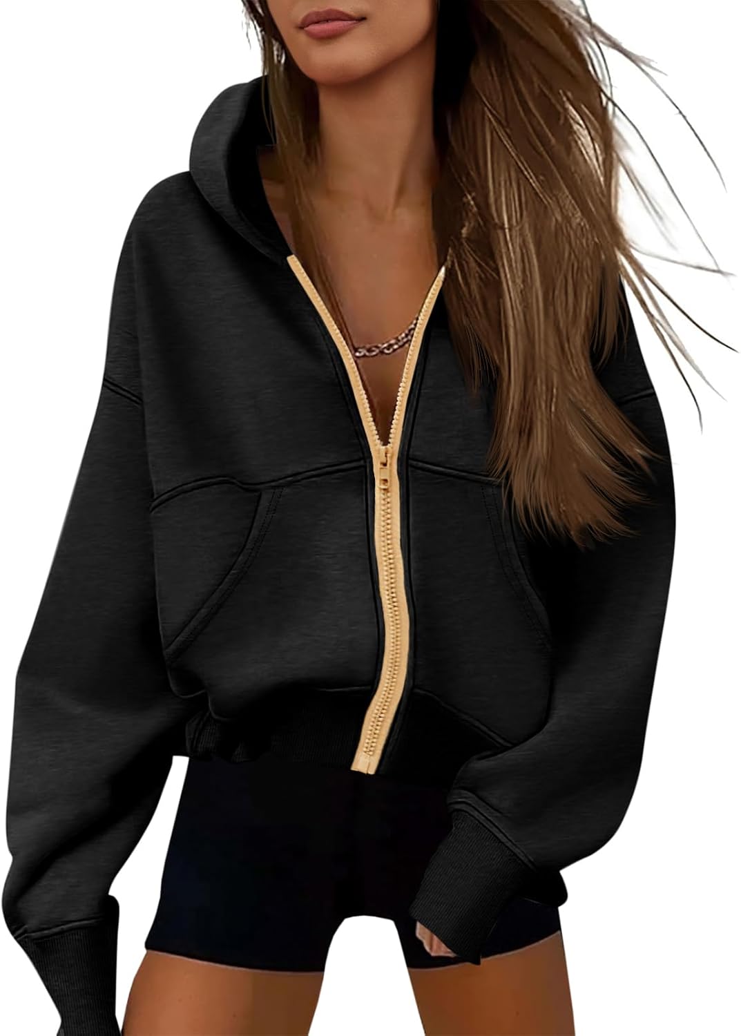 Fisoew Women's Zip Up Hoodies Sweatshirts Casual Long Sleeve Hooded Jackets Fall Trendy Y2K Clothes
