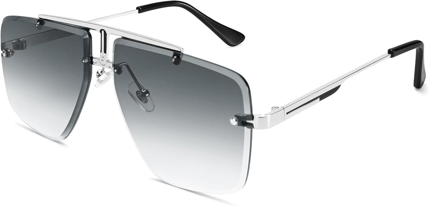 Rimless Oversized Square Sunglasses for Men Trendy Fashion Big Shades Tinted Lens Gold Metal Frameless Glasses UV400