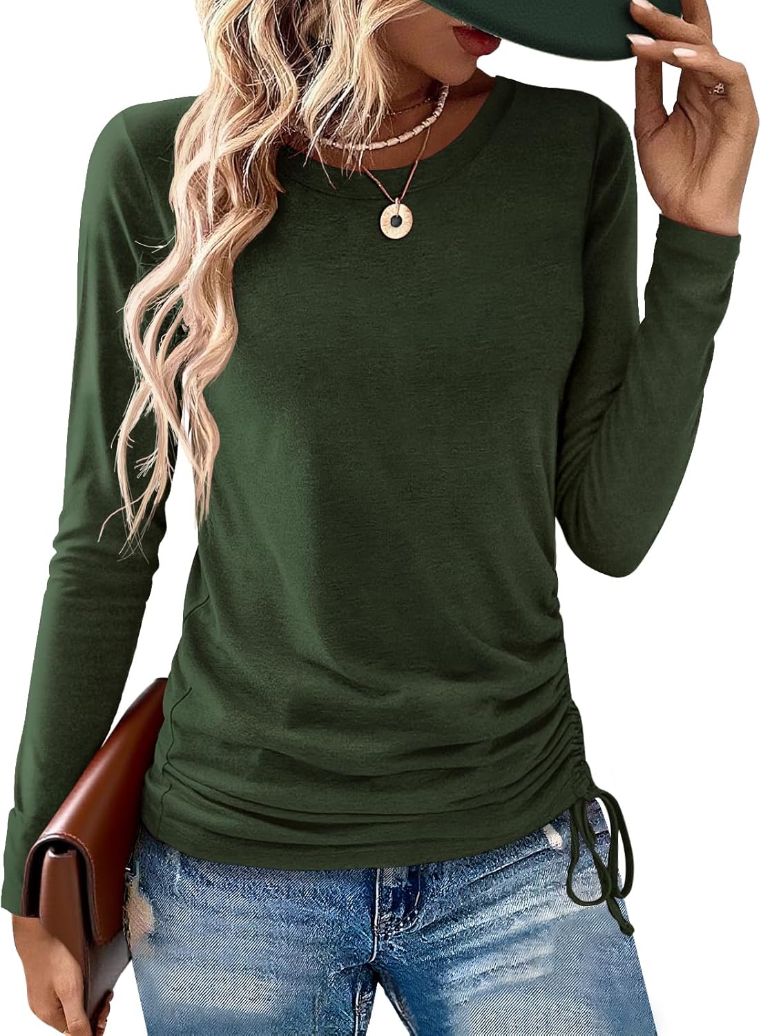 Womens Long Sleeve Shirts Crewneck Tops Loose Fit Stretch Casual Workout Basic Fall T-Shirts 2025