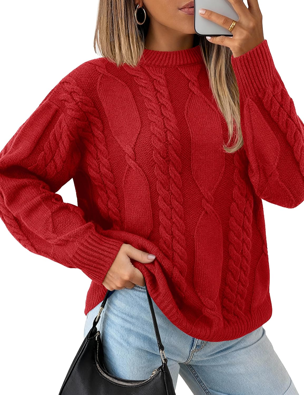 YUCOLEN Womens Sweater Cable Knit Oversized Long Sleeve Sweater Crewneck Casual 2026 Chunky Pullover Tops