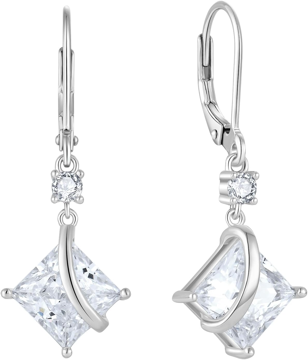 Square Princess Cut Drop Dangle Earrings 925 Sterling Silver Solitaire Leverback Earrings Birthstone Jewelry Gifts for Women