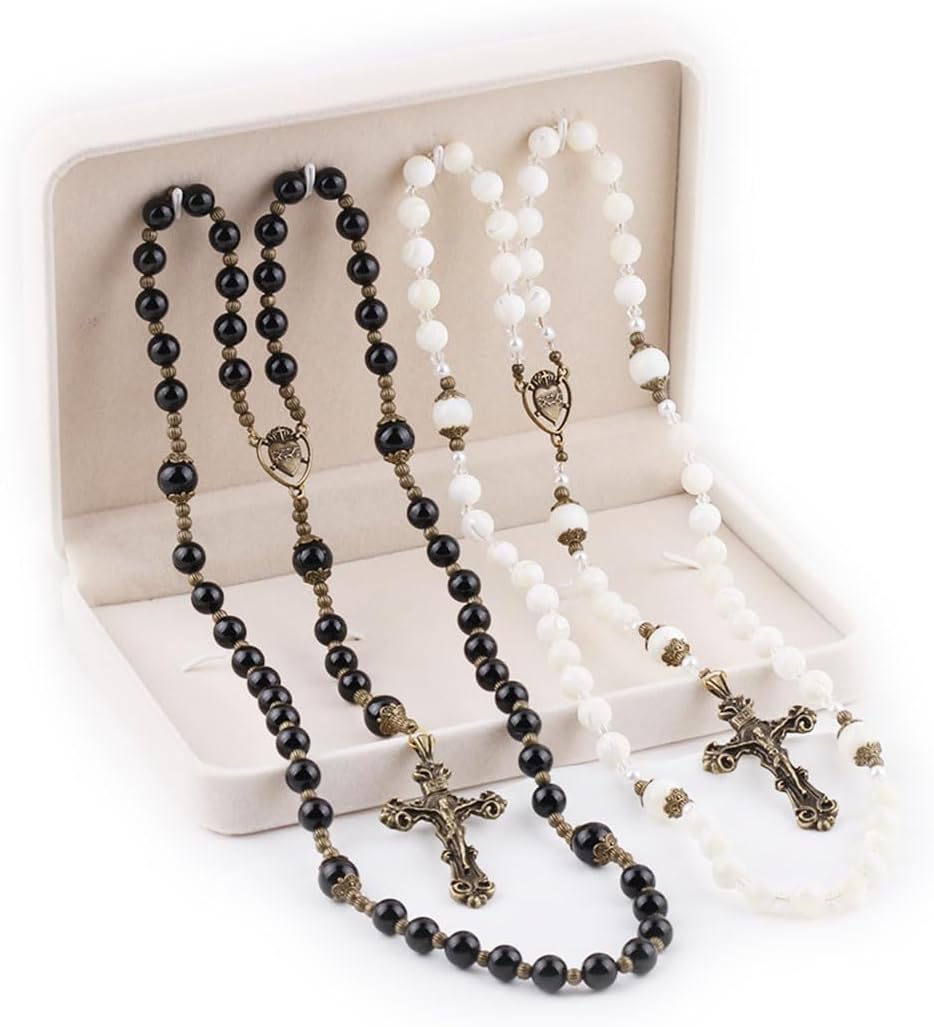 Elegant Wedding Rosary for Bride and Groom - His & Hers Matching Sacred Heart of Jesus Catholic Rosaries for Weddings, Anniversaries & Special Occasions