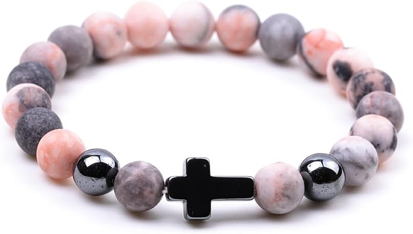 COLORFUL BLING Cross Beaded Bracelet Natural Stone Stretch Prayer Bracelet Anti Depression Anxiety Gifts