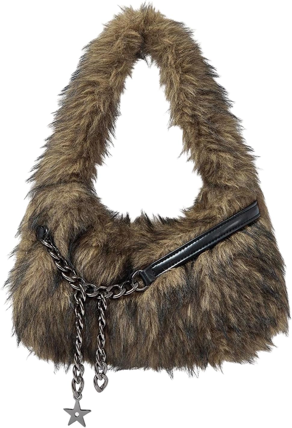Women's Faux Fur Shoulder Bag Metal Chain Top Handle Handbags Y2k Shoulder Purse