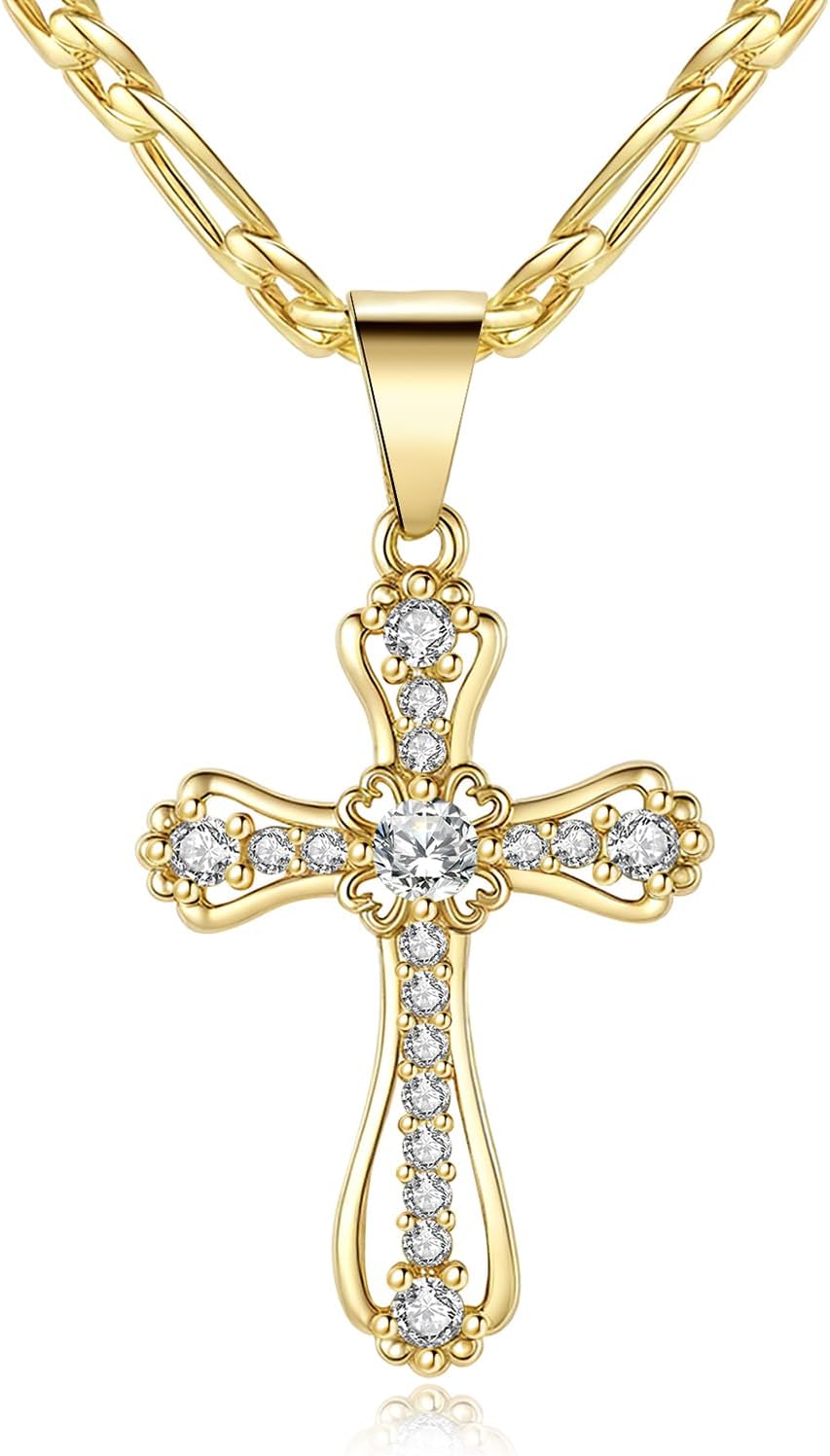 Valentines Day Gifts for Her Gold Cross Necklace for Women, 14K Gold Plated Christian Cross Pendant with Cubic Zirconia – Dainty Gold Necklace CZ Diamond, Religious Cross Jewelry Gifts for Easter, Christmas,Valentine,Mother's Day