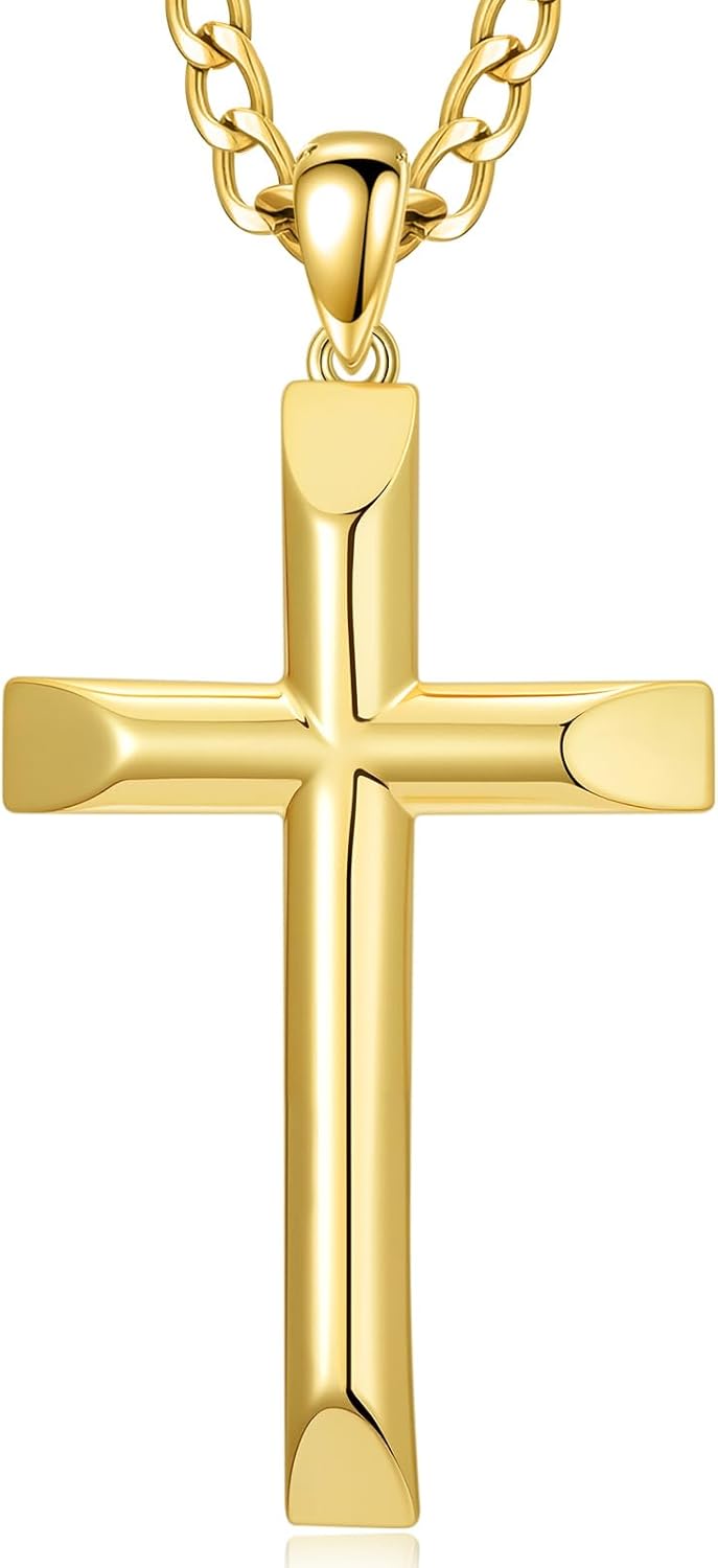 18K Gold Cross Necklace for Men Gold Cross Pendant Minimalist Cross Christian Jewelry Religious Gift