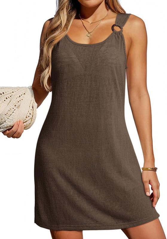 Dokotoo Swimsuit Coverup for Women Scoop Neck Sleeveless Sheer Beach Dresses Side Slit Vacation Bathing Suit Cover Up