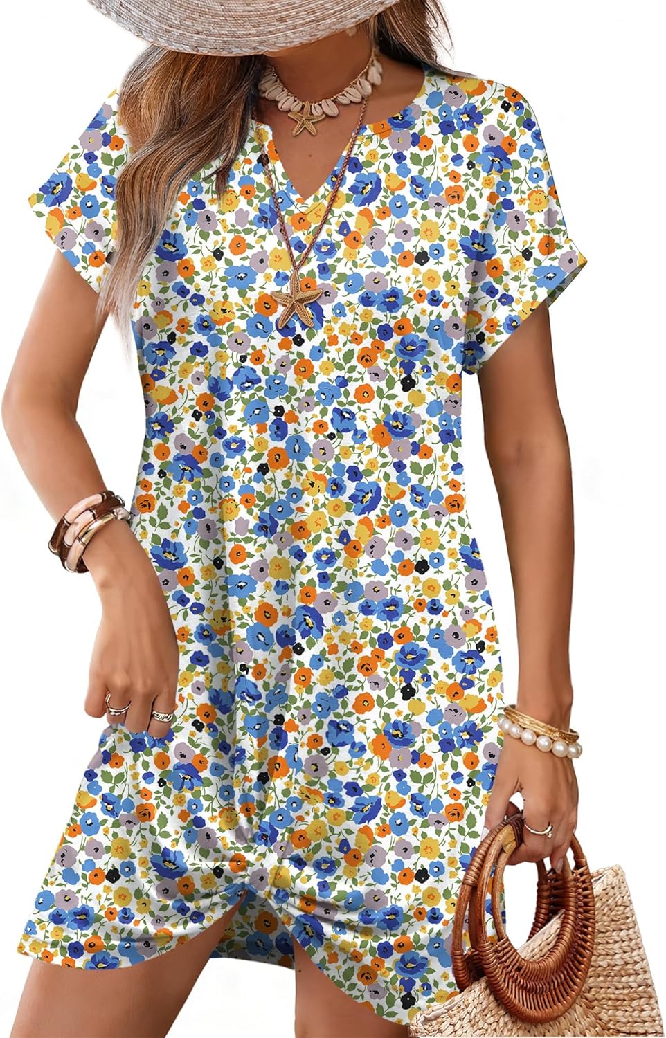 RUMIA Summer Dresses for Women Eyelet Casual Dresses Short Sleeve Twisted Coverup Beach Vacation Clothes