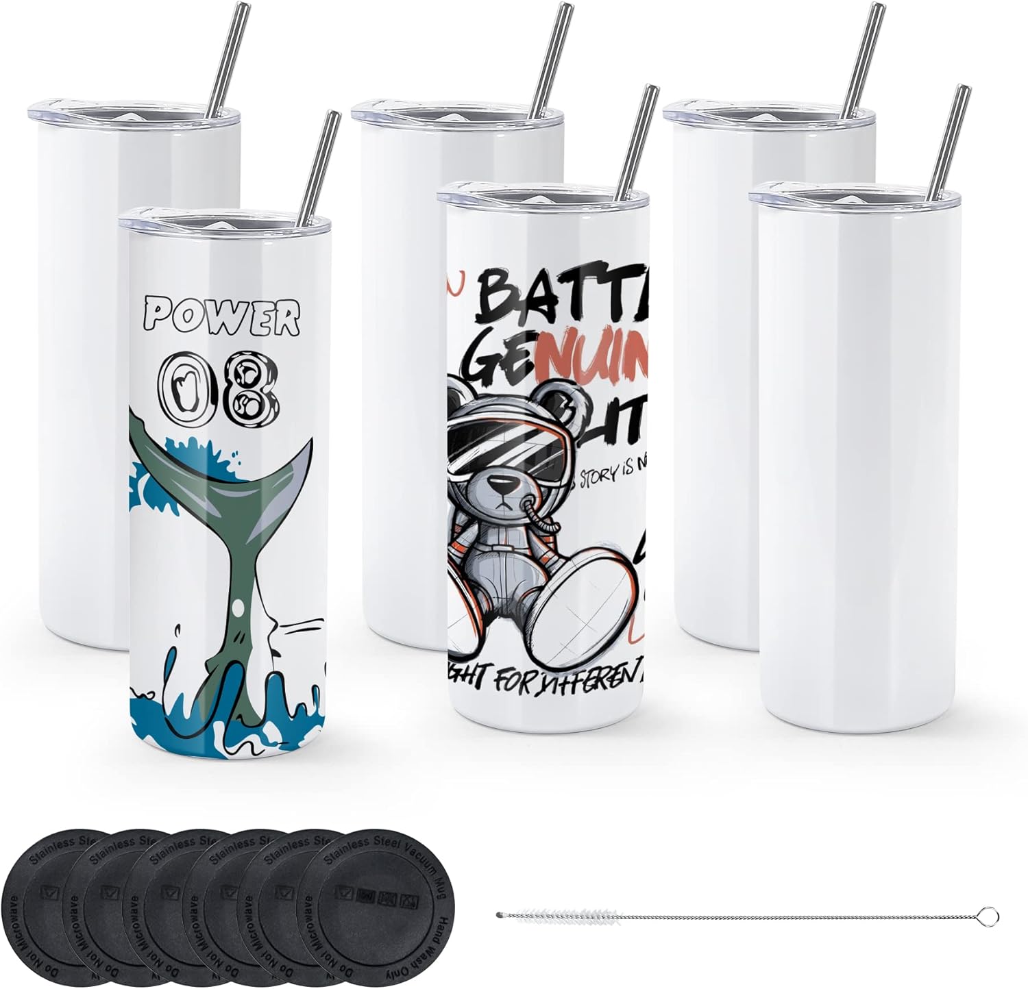 - DESIGN YOURSELF:Sublimation tumblers is painted by a layer of quality sublimation coating,the sublimation blank skinny tumblers allow you to design exquisite cups in your own style.It's ready for sublimation,with quality coating,meanwhile the printed color comes out bright not foggy,which is different from the other ordinary white tumblers.If you want to DIY your own tumbler,this is a great choice.