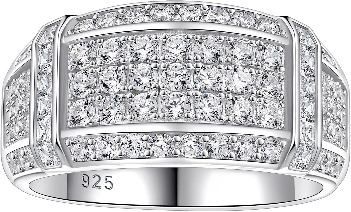 SHELOVES Moissanite Mens Wedding Bands Round Cut D Color VVS1 925 Sterling Silver Promise Wedding Rings Gift for Him Size 8-13