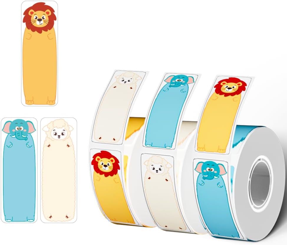 - Color: Black on Animals Patterns Sticker Thermal Paper, Pre-cut Self-Adhesive Label Tape, 14mm x 40mm (0.55x1.57")3 Rolls