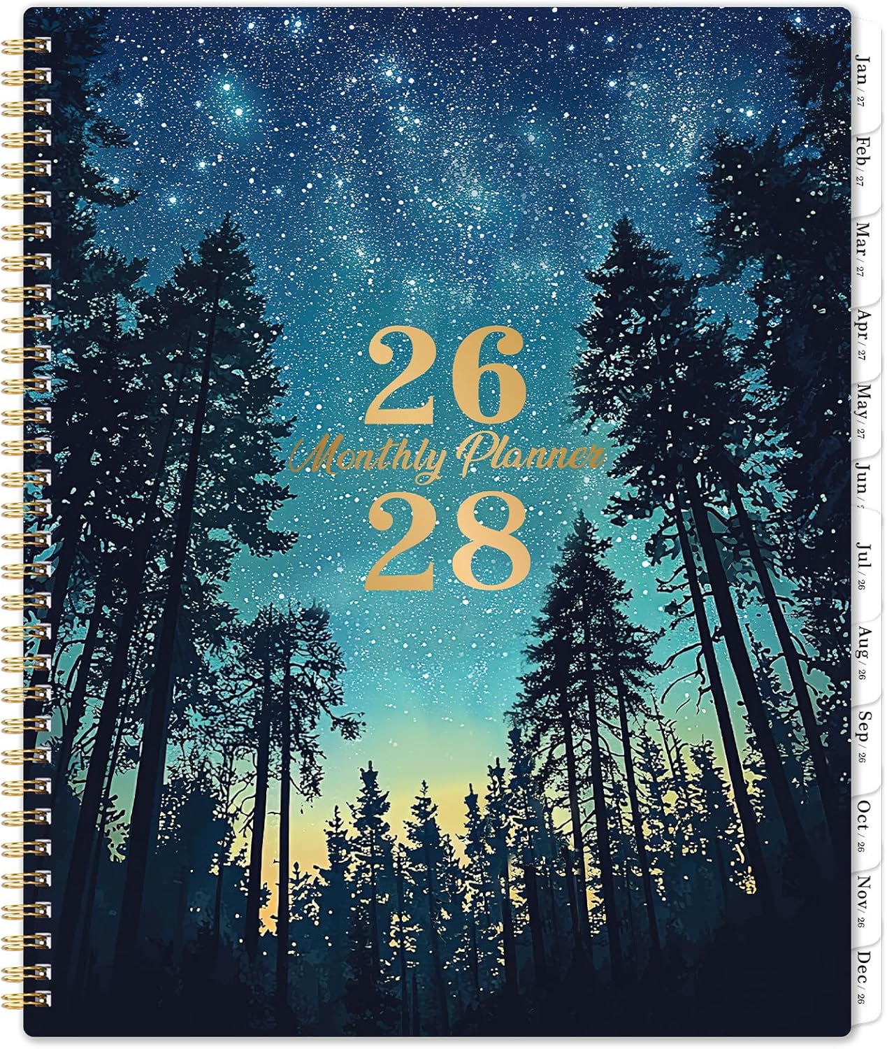 - Durable and Convenient - Features sturdy twin-wire binding that lays flat and monthly tabs for quick navigation. The flexible cover and double-sided pocket store loose items. The ideal size of 2 year monthly planner 2026-2028 is powerful yet portable for office, home, or travel.