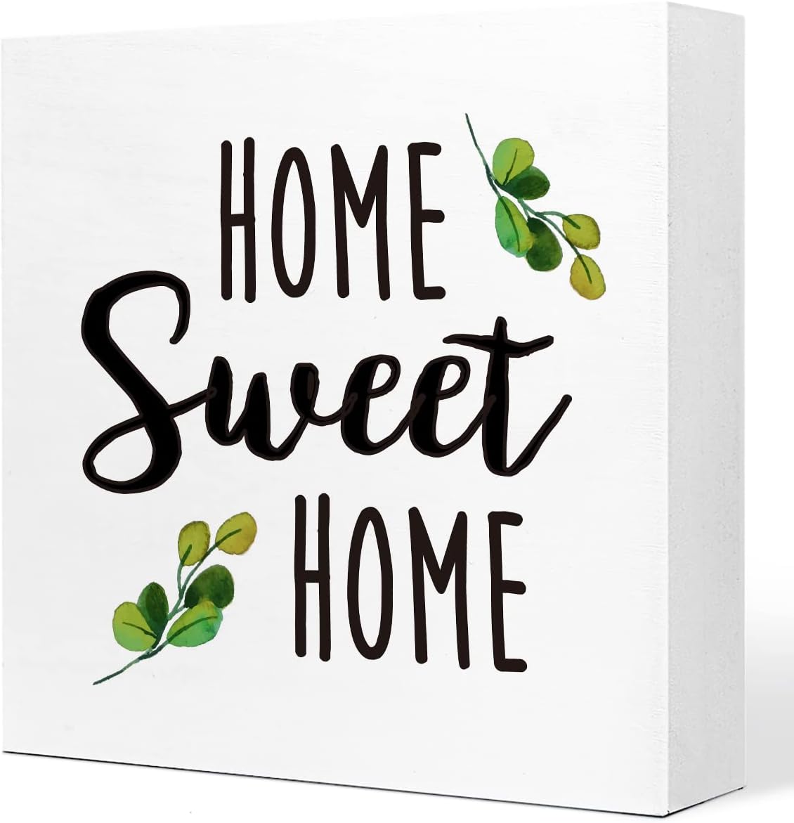 Home Sweet Home Wooden Sign, Funny Home Wood Block Sign for Bedroom, Living Room, Cubicle, Desk, Shelf, Table Decor