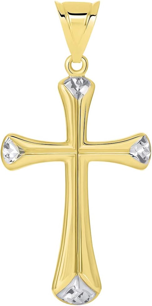 Jewelry America 14k Yellow Gold Textured Edge Two Tone Plain Cross Pendant