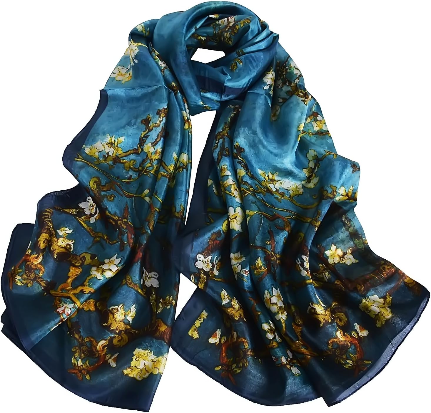 Women's 100% Mulberry Silk Scarf Lightweight Long Floral Print Neck Scarf, Beach Wrap & Travel Photography Shawl Gift