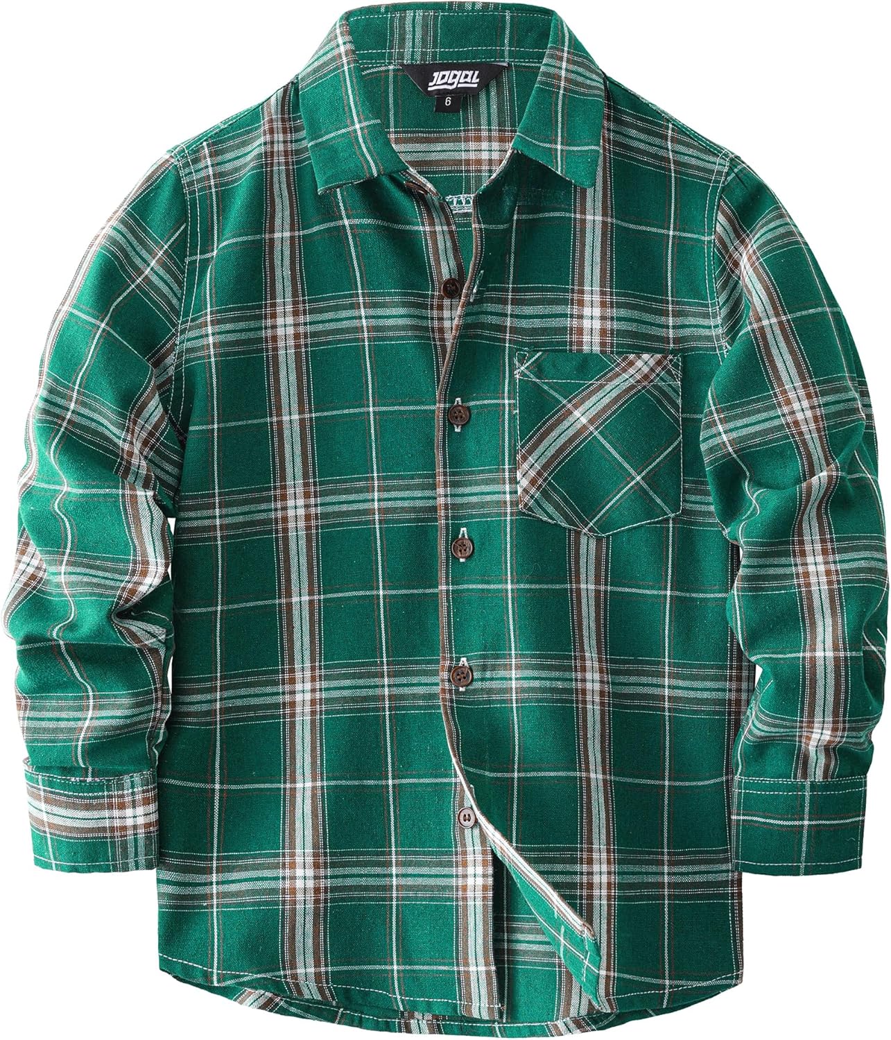 JOGAL Boys Plaid Shirt Long Sleeve Kids Button Down Shirts with Pocket for 6-14 Years