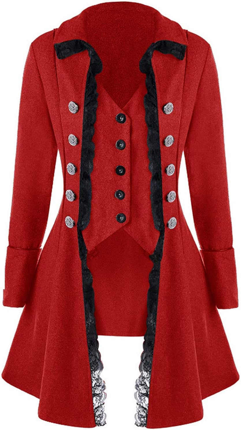 VNVNE Women's Gothic Steampunk Corset Halloween Costume Coat Victorian Tailcoat Jacket