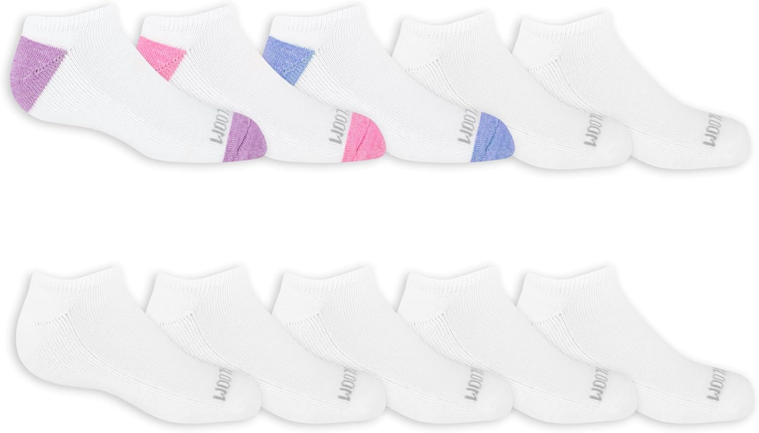 Fruit of the Loom Girls' Everyday Lightweight Sports No Show Socks (10 Pack)