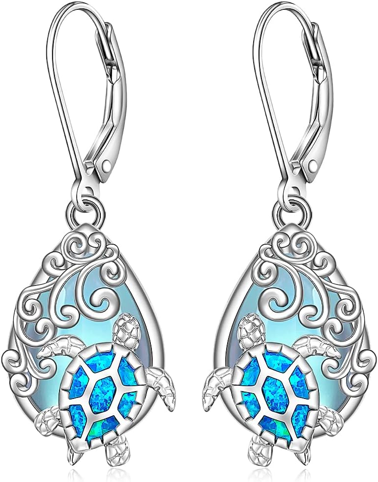 Sea Turtle Earrings Moonstone Turtle Earrings for Women Sterling Silver Blue Opal Turtles Jewelry Moonstone Leverback Dangle Christmas Gifts