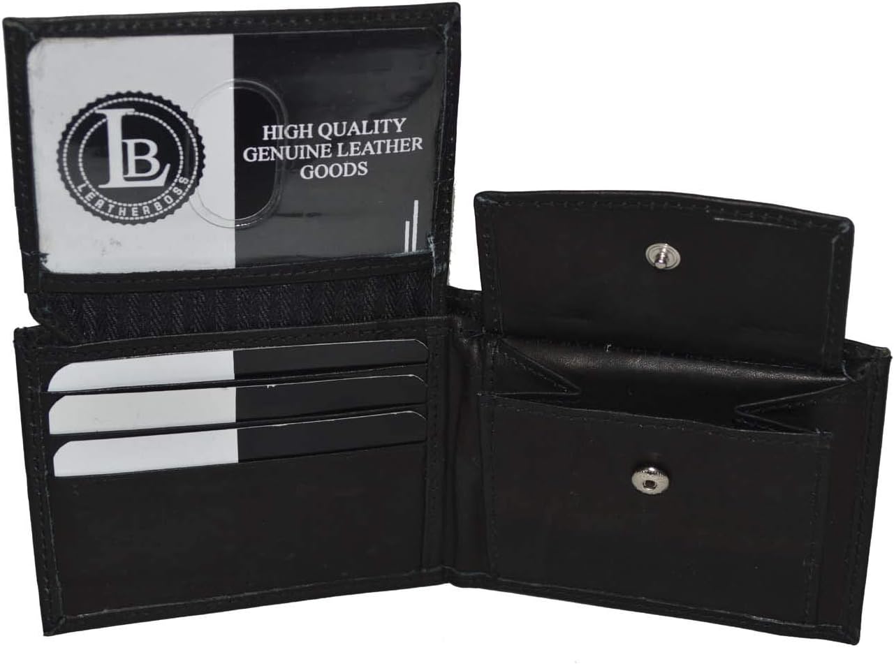 Leatherboss Leather Boys Slim Compact Flap Id Coin Pocket Bifold Wallet with debit credit card holder, Black