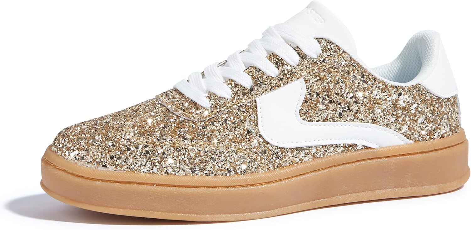 LUCKY STEP Women's Glitter Sneakers Fashion Retro Casual Sparkly Bling Shiny Dressy Bedazzled Bridal Wedding Anti Slip Walking Shoes