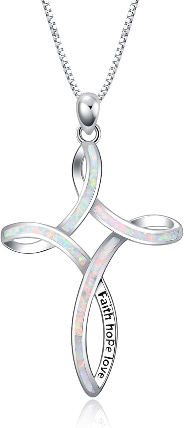 WINNICACA Opal Cross Necklace for Women, 925 Sterling Silver Cross Pendant Necklaces Celtic Knot Blue White Opal Jewelry Confirmation Gifts for Women Her Wife Mom Daughter Birthday Valentines Day Gift