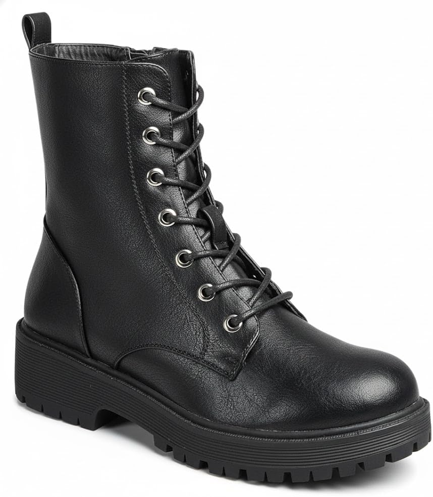 Forever Link Womens Combat Ankle Boots Lace-up Short Booties with Lug Sole and Side Zipper