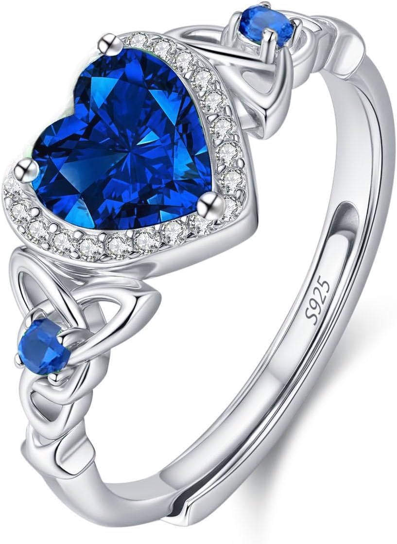 Celtic Sterling Silver Birthstone Ring for Women, Adjustable Size Trinity Knot Heart Design 925 Silver January Garnet Ring, Meaningful Birthday Gift for Girlfriend, Wife, Mom