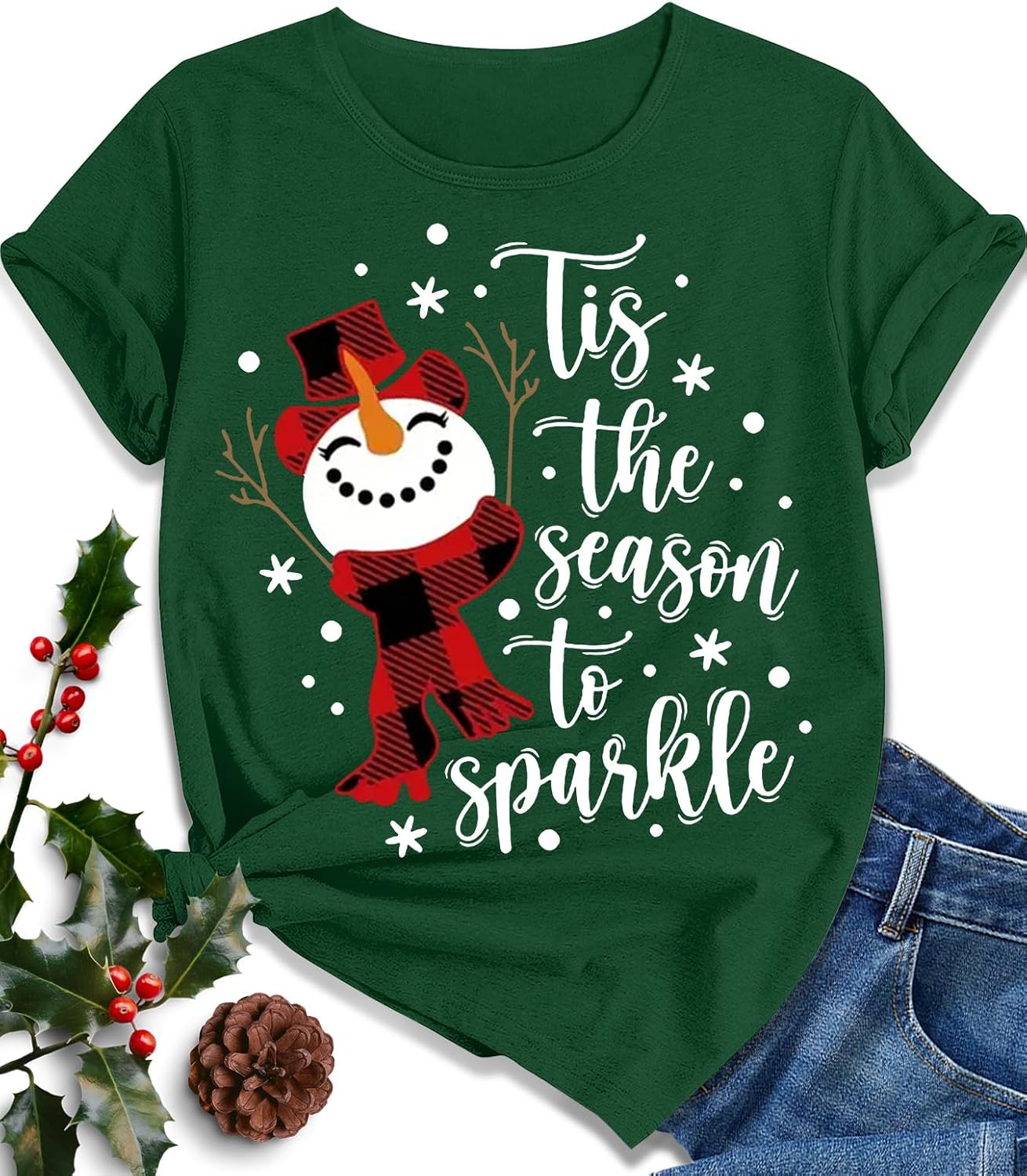 EUOW Christmas Shirts for Women Family Santa Graphic T Shirts Short Sleeve Funny Xmas Holiday Print Tee Tops