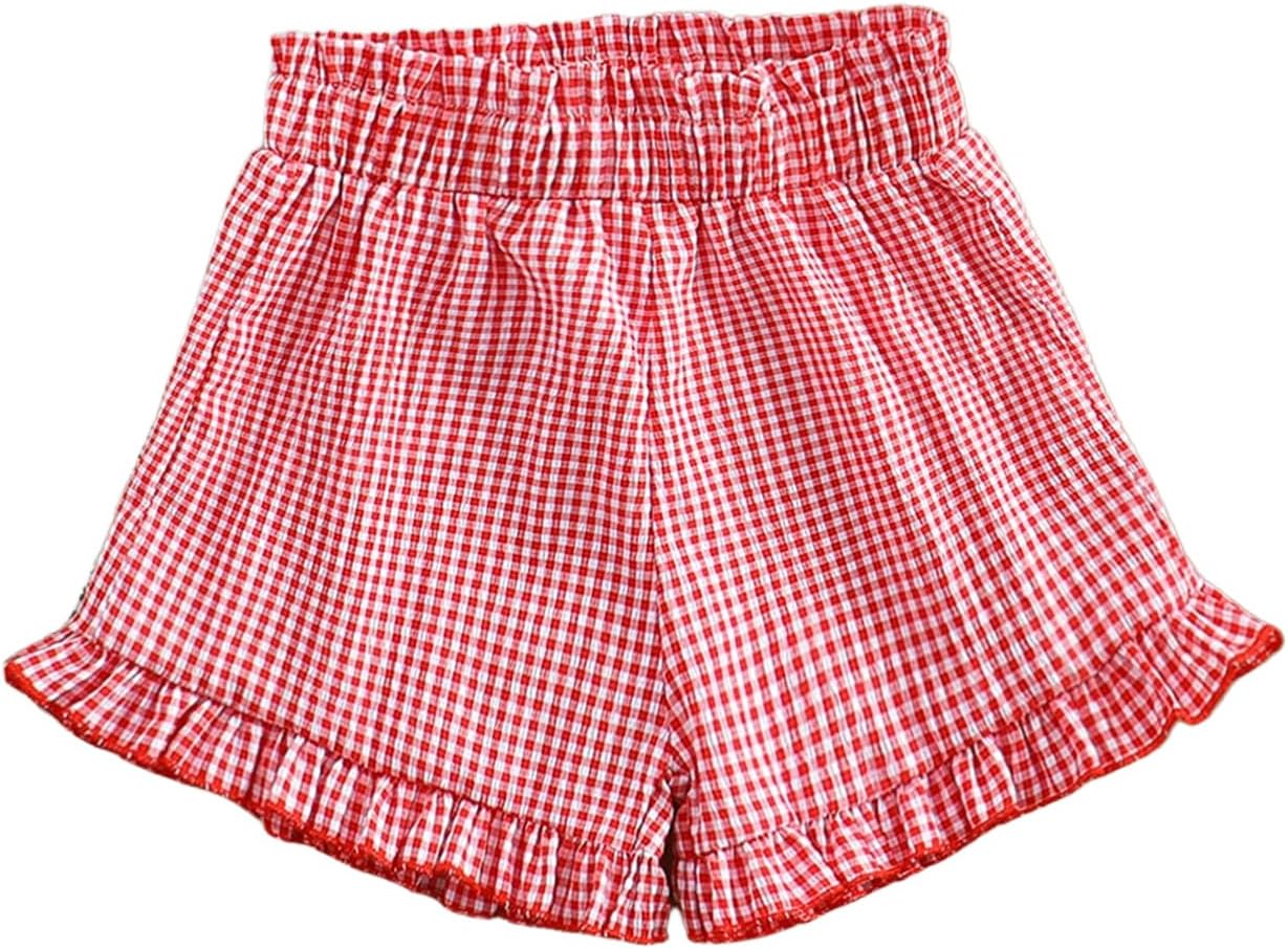 Girl's Gingham Shorts Elastic Waist Wide Leg Ruffle Hem Loose Casual Summer Plaid Shorts