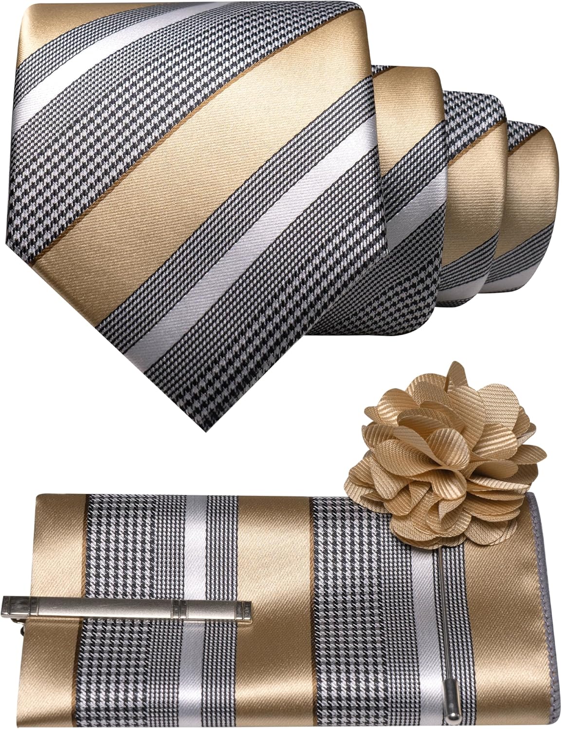 JEMYGINS Mens Striped Tie and Lapel Pin Necktie Pocket Square and Tie Clip Sets for Business Casual 4PCS