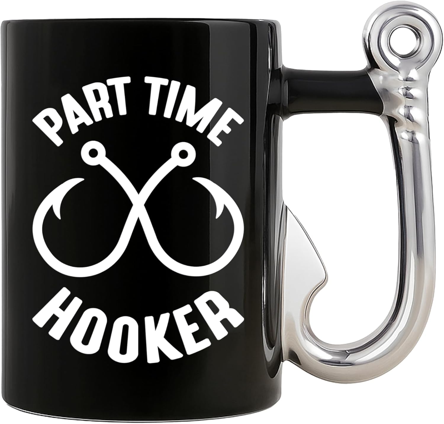 Onebttl Fishing Gifts for Men, Fishing Hook Coffee Mug, 13.5oz/400ml Funny Ceramic Mug for Christmas, Father's Day, Part Time