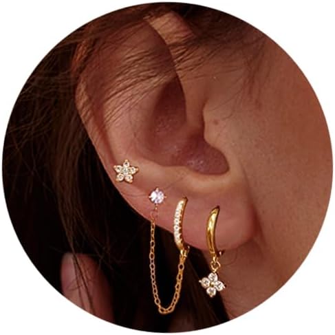 Earring Sets for Multiple Piercing Small Gold Earring Stack 14K Gold/Silver Plated Huggie Hoop Earrings for Women Hypoallergenic Cartilage Stud Gold and Green Earring Set