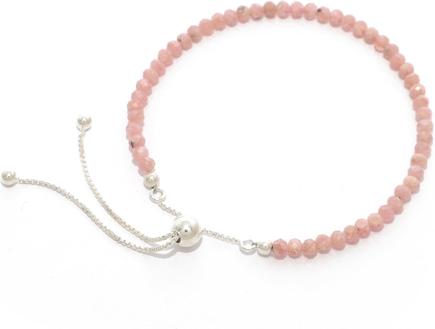 3mm Round Natural Rhodochrosite Adjustable Bolo Bracelet for Women in Sterling Silver, October, November Birthstone Gifts for Her Birthday, Anniversary, Christmas, Graduation