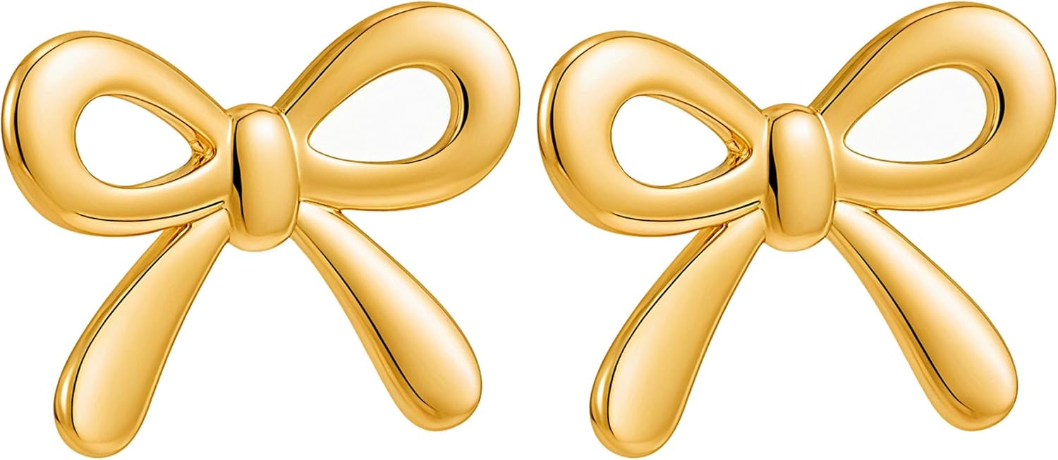 Gold Bow Earrings for Women Dainty Gold Bowknot Ribbon Stud Earrings Hypoallergenic Minimalist Simple Cute Bow Earring Jewelry Gifts Trendy Stuff
