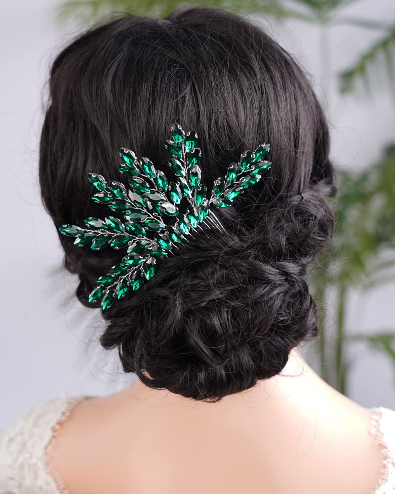 Kercisbeauty Emerald Crystal Hair Comb for Wedding Women Bridal Green Rhinestones Hair Piece Jewelry Vintage Boho Handmade Hair Accessories (Green)