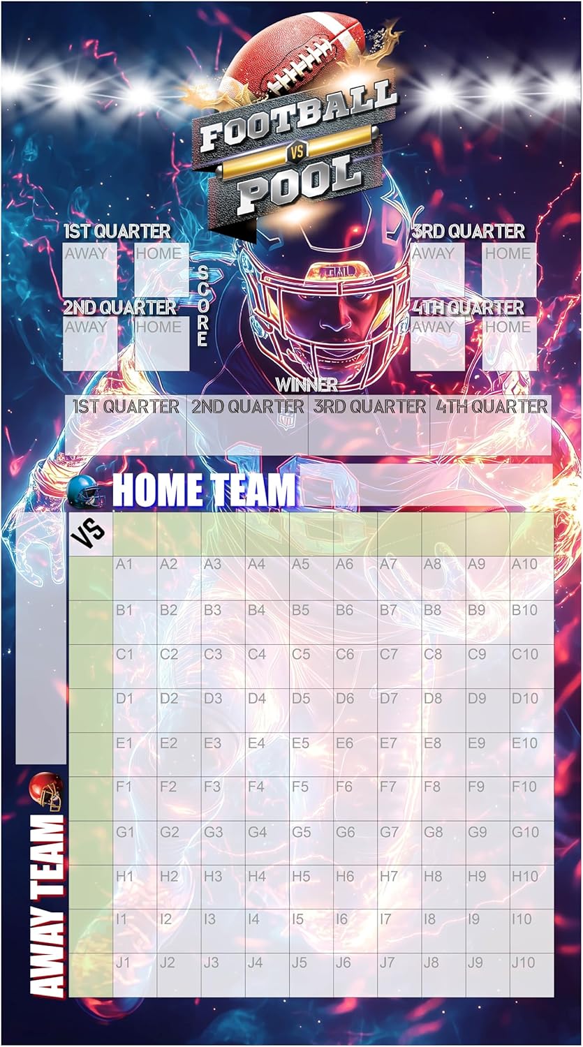 Bambluby Football Squares Pool Board - 35" x 19" Office & Party Game Poster for Football Fans
