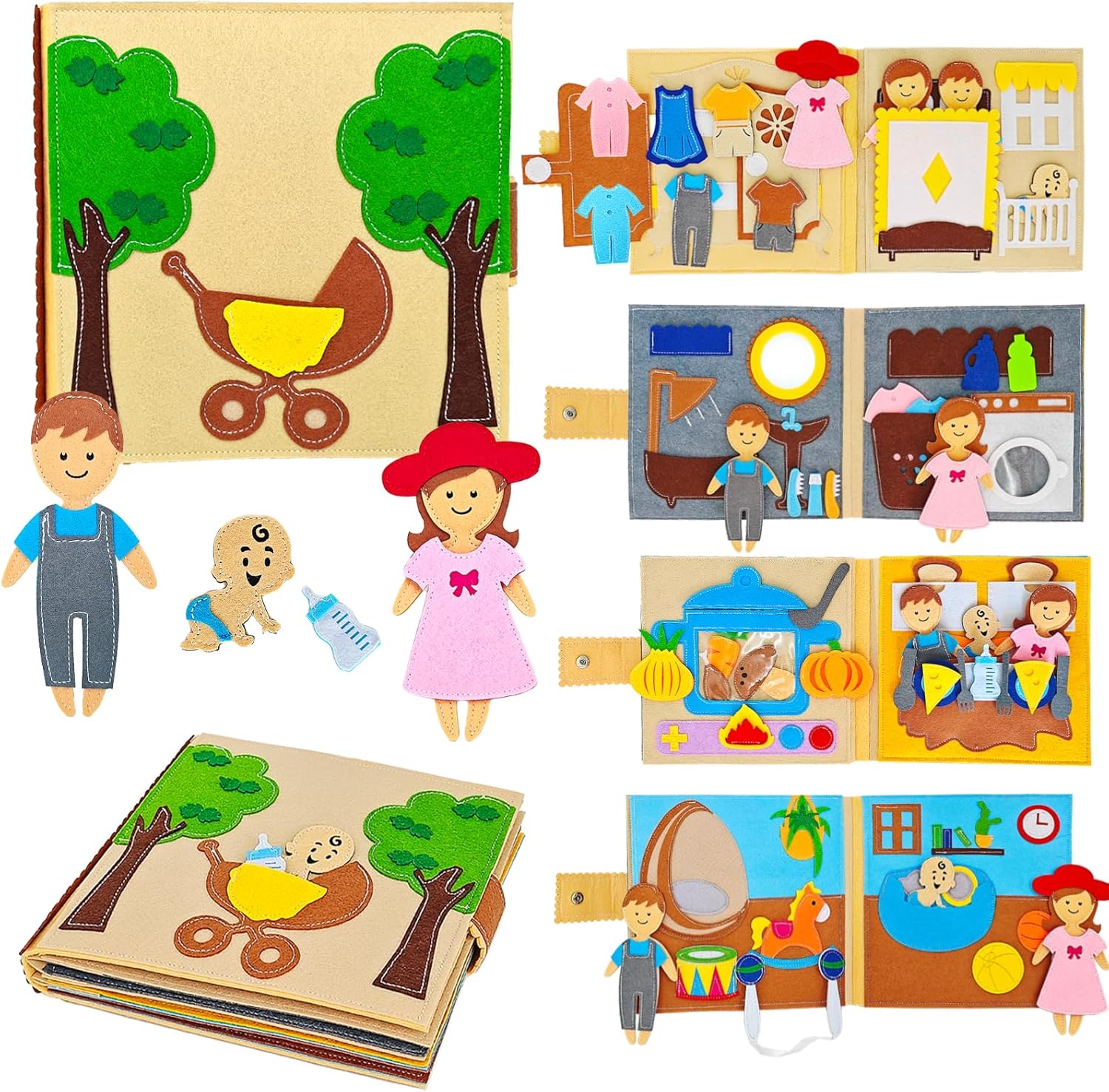 - This montessori books Toys provides a fun way to teach children , Children play the role of family life and take care of the daily life of babies. this book engage children to create imaginative scenes and telling different story while learning about different jobs.