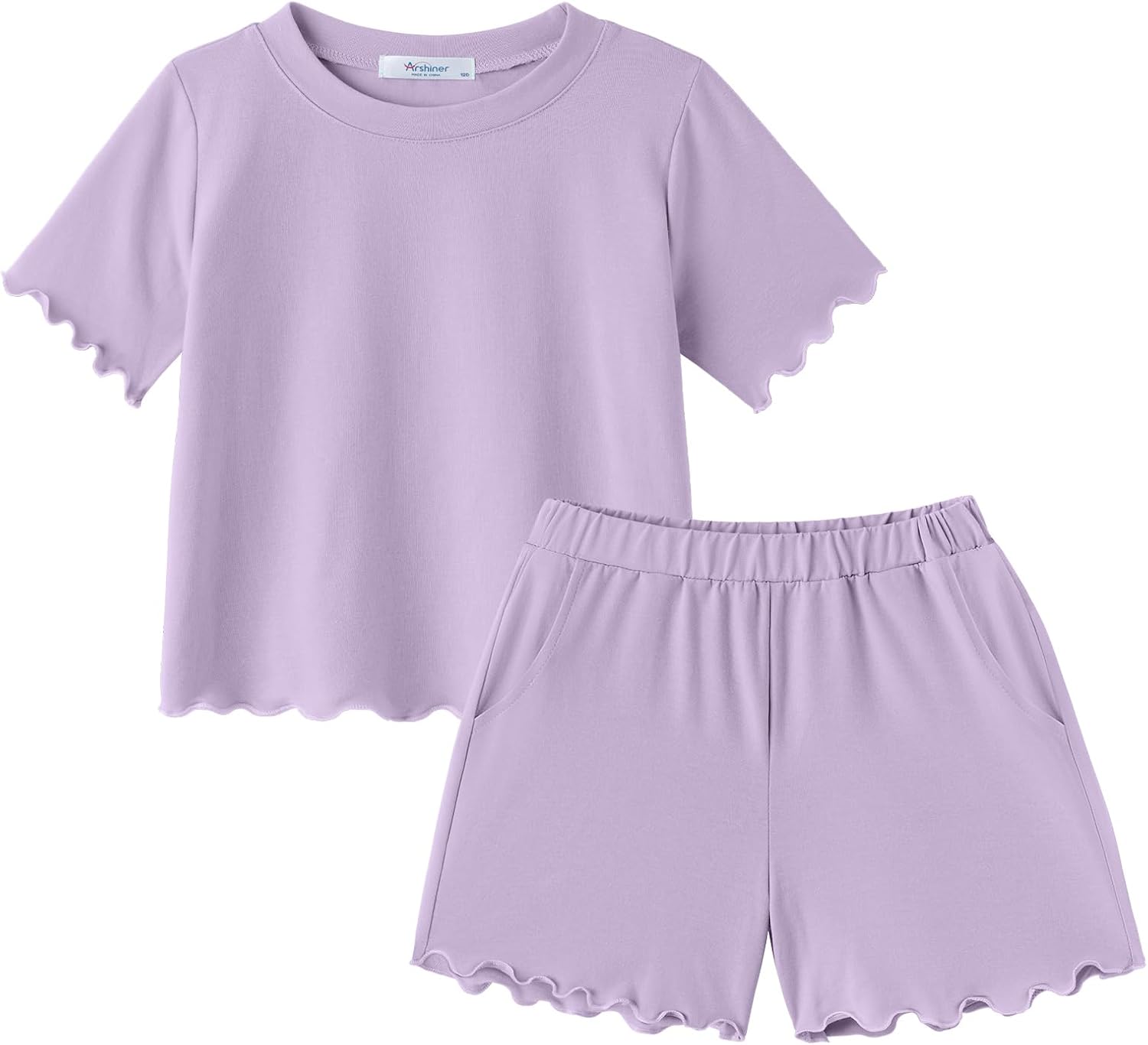 Arshiner Toddler Girls Clothes Ruffle Short Sleeves Crewneck Tops and Shorts with Pockets Cute Summer 2 Pieces Short Sets