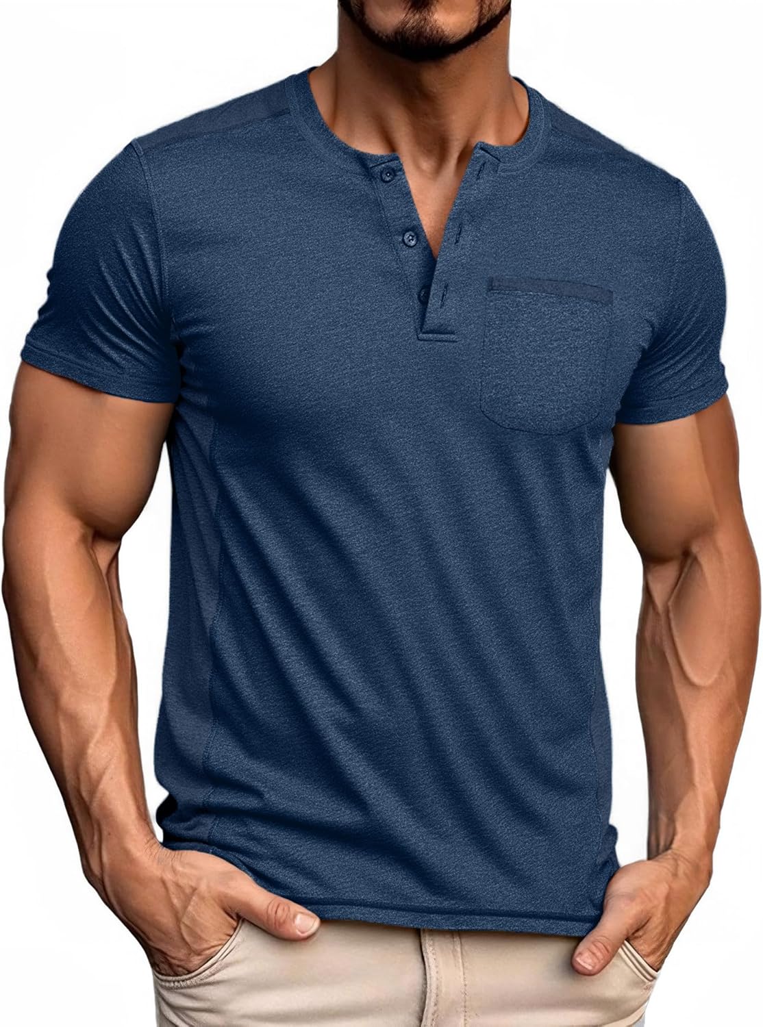 ZITY Men's Henley Shirts Short Sleeve Pocket Shirts for Man Casual Summer Shirts with 3 Buttons