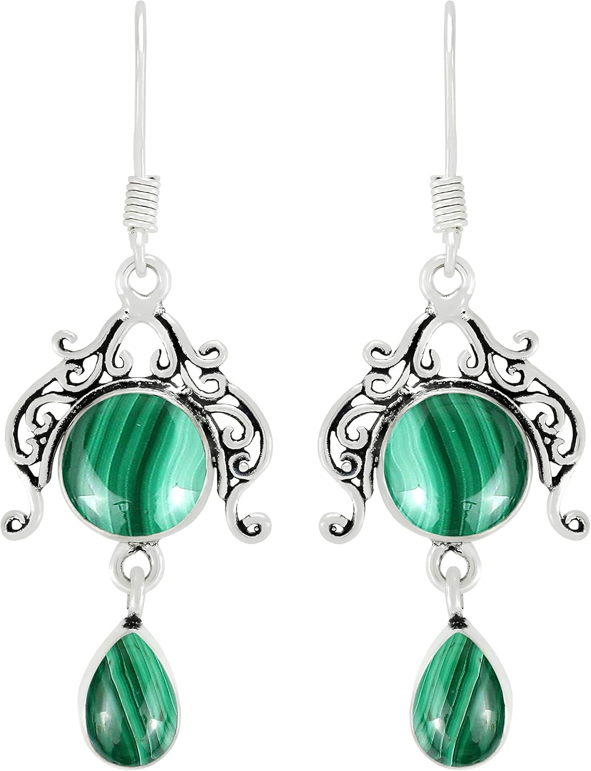 Natural Moonstone Lapis Malachite earrings Two Stone 925 Silver Overlay handmade Dangle Earrings for Women