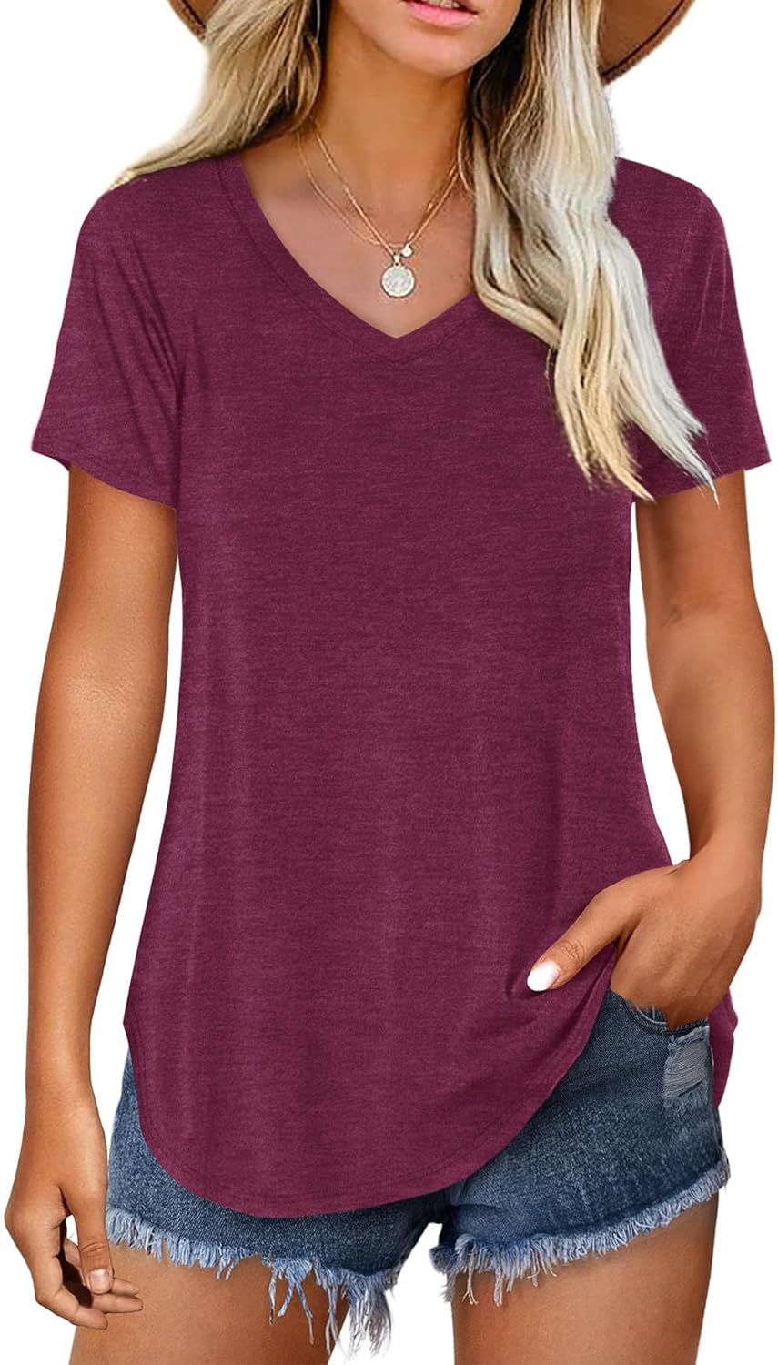 Amoretu Women V Neck T-Shirt Casual Short Sleeve Plain Tee Shirts Blouses